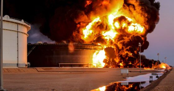 BBC عربي: قال رئيس المؤسسة الوطنية للنفط في ليبيا مصطفى صنع الله إن هجوما يشتبه في أن وراءه تنظيم “الدولة الإسلامية” تسبب في اندلاع حرائق في أربعة خزانات نفط في ميناء راس لانوف أمس الخميس